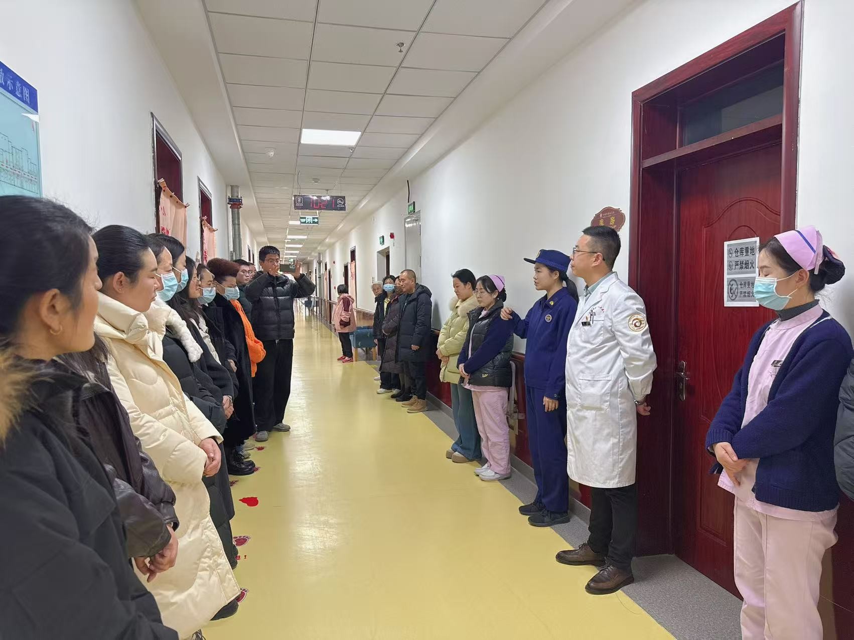 为深入落实消防安全治本攻坚要求及养老机构消防安全管理相关规定,切实强化医养院火灾防控能力,提升全员消防安全意识与应急处置水平,保障老人及员工生命财产安全。结合我院实际,于12月16日上午开展2025年下半年消防安全培训及疏散逃生应急演练。医养院各区域负责人、全体职工及部分自理老人等共计60余人参加。培训及演练由副院长刘新平主持,特邀白银区消防大队宣传人员来院指导。