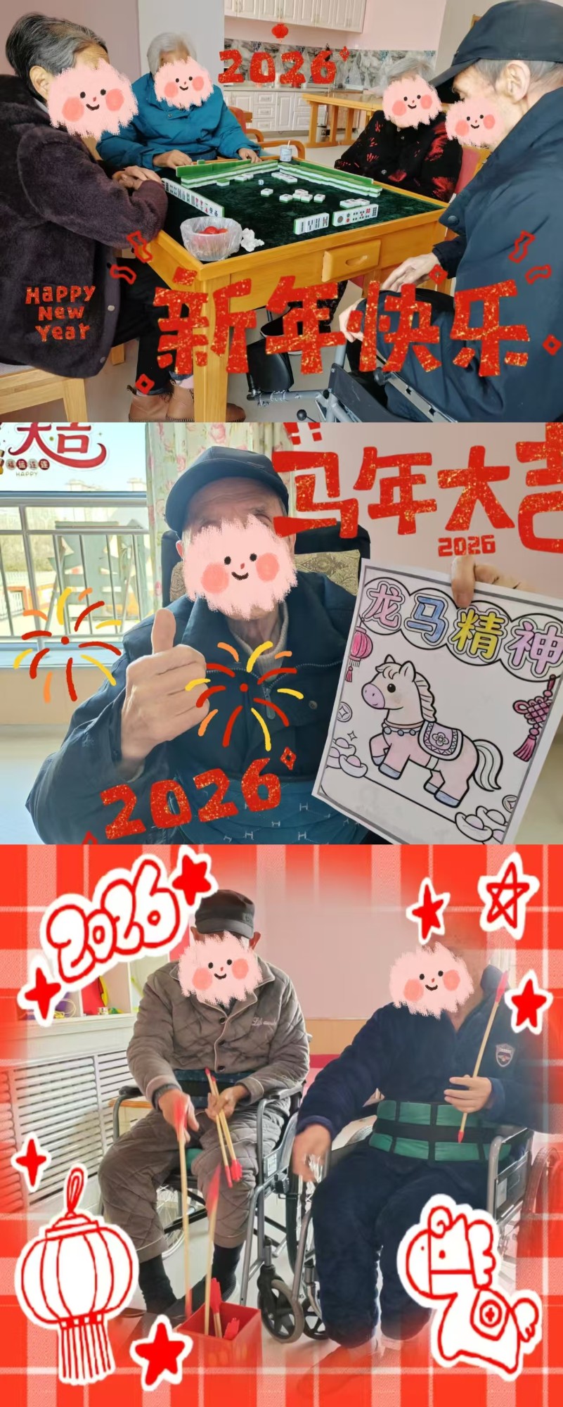 整个春节期间,工作人员坚守岗位,全程陪伴,用责任与爱心守护着每一位老人的健康与平安。此次活动不仅丰富了老人的节日生活,更传递了“医养结合、情暖人心”的服务理念,展现了同馨医养院温馨、和谐的大家庭氛围。